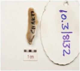 | Description / विवरण | A single sided blade made on chert, end struck flake, prepared platfrom on proximal end diffused bulb on ventral surface, sharp cutting edge, use wear marks on cutting edge, ridges on dorsal surface and triangular in cross section. |