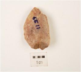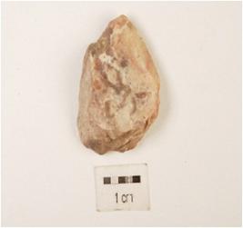 | Description / विवरण | A scraper made by chert, flake scars on the surface, partly retouching on the cutting edges. |