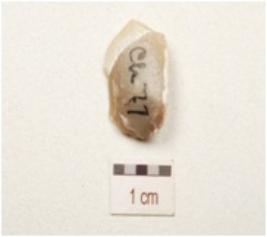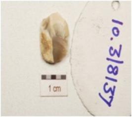 | Description / विवरण | A utilized flake made on chert, end struck flake. Use wear marks on cutting edge, flake scars on one surface and triangular in cross section. |
