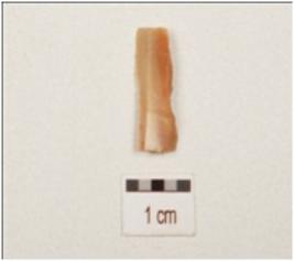 | Description / विवरण | A blade made on chert, bulb absent, use ware marks on cutting edge, double ridge on dorsal surface and trapezoidal in section. |
