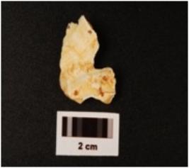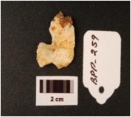 | Description / विवरण | Chert flake, irregular shape, blade scars on the surface. |