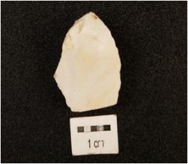 | Description / विवरण | A scraper made by chert, flake scars on the surface, prepared paltform on the proximal end partly retouching on the cutting edges. |