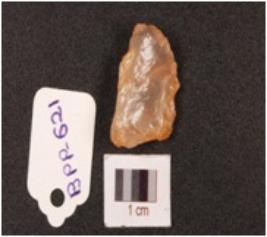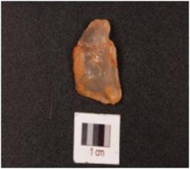 | Description / विवरण | A stone flake made of quartz with flake scars on the dorsal, smooth and irregular surface. |