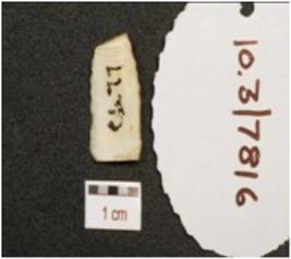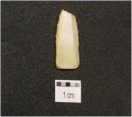 | Description / विवरण | A backed blade made on chalcedony, sharp cutting edge, use ware marks on cutting edge, blunted one side double ridge on surface and trapezoidal in section. |