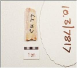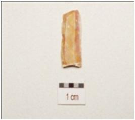 | Description / विवरण | A parallel sided blade made on chert, sharp cutting edges, use ware marks on cutting edges, two prominent ridges on dorsal surface and trapezoidical in section. |