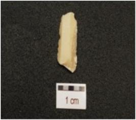 | Description / विवरण | A parallel sided blade made on chert, end struck flake, use ware marks on cutting edges, two ridges on dorsal surface and triangular in section. |