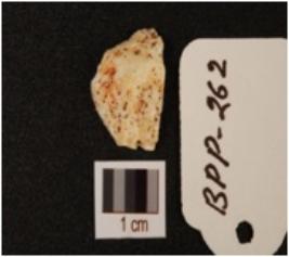 | Description / विवरण | Flake, made on chert, use wear mark on the cutting edges, irregular shape. |