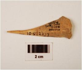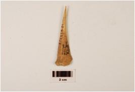 | Description / विवरण | Awl with a pointed end broader and porous at other end and hollow part of bone marrow visible on one side. |