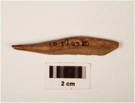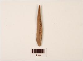 | Description / विवरण | Bone point with a pointed end and a broad end towards top slightly broken at one side, round cross section towards the pointed end, polished surface. |