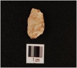 | Description / विवरण | Flake, made by chert pointed distal end, and broken proximal end, irregular, retouch, mark on the both cutting edges. |