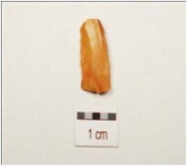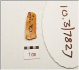 | Description / विवरण | A backed blade made on chert, prepared platform, sharp cutting edge, retouched on cutting edge, blunted one lateral side, double ridge on dorsal surface and trapezoial in section. |
