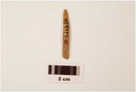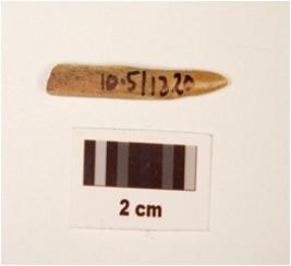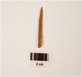 | Description / विवरण | Fragment of bone point, pointed top, broken bottom, round surface and polished. |