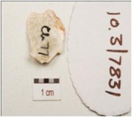 | Description / विवरण | A side scraper made on chert, end struck flake, retouched on cutting edge, flake scars on dorsal surface and plano convex in section. |