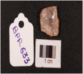 | Description / विवरण | A flake made of quartz with prepared platform, bulb on the ventral and smooth surface. |