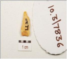 | Description / विवरण | A flake made on chert, flake scars on one surface. |