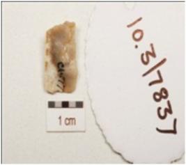 | Description / विवरण | A utilized flake made on chert, end struck flake, use ware marks on cutting edge, cortex on one surface, flake scars on surface and trapezoidical in section. |