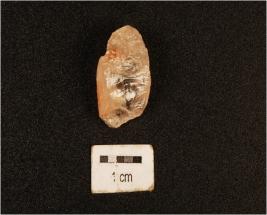 | Description / विवरण | A quartz flake with smooth surface and flake scars on dorsal, cortex on surface, ripple marks on surface and white in colour. |