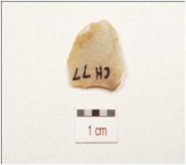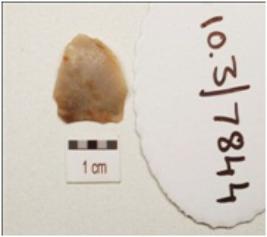| Description / विवरण | A end scraper made on chert, bulb on ventral surface, blunted cutting edge, retouched on cutting edge, flake scars on one surface and trapezoidal in section. |