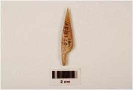 | Description / विवरण | Bone arrow head with a pointed end and other end broken, rectangular cross section, polished surface. |