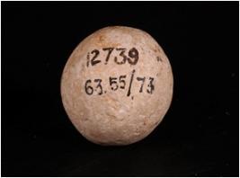 | Description / विवरण | A sling ball made of stone with smooth surface. |