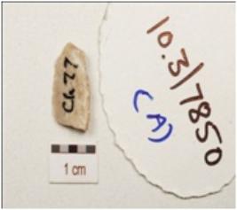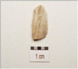 | Description / विवरण | A fragment of backed blade made on chert, end struck flake, prepared platform, bulb on ventral surface, broken at one end, use ware marks on cutting edge blunted one side, mid ridge dorsal surface and triangular in section. |