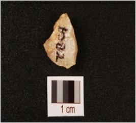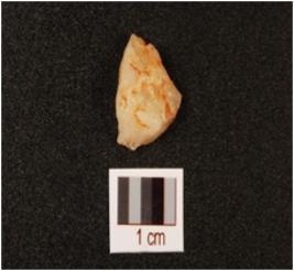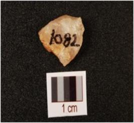 | Description / विवरण | A quartz flake with three flake scars on surface. |