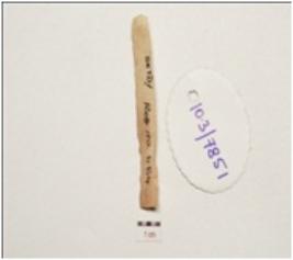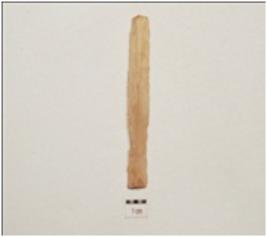 | Description / विवरण | A blade made on end struck chert mid ridge on the dorsal side, prepared platform, use wear marks on cutting edge and triangular section. |