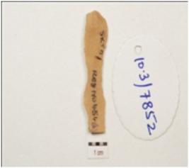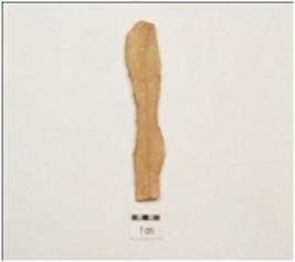| Description / विवरण | A blade made on end struck chert, prominent bulb on ventral side, prepared platform, mid ridge on dorsal side and partly broken edges. |