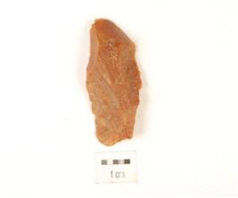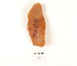 | Description / विवरण | A blade made on quartzite stone, ridge and flake marks on dorsal surface, irregular edges, difused bulb. |