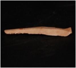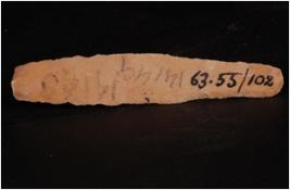 | Description / विवरण | A Parallel sided blade made of Chert with a mid-ridge on dorsal side, a diffused bulb on the ventral, use-wear marks along the cutting edges. Detached from a prepared core. |