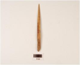 | Description / विवरण | A point made on bone with rectangular in cross section, polished surface and tip intact. |