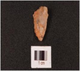 | Description / विवरण | Quartz flake, irr-regular shaped with rough rugged surface and use wear marks along the cutting edge. |