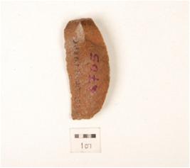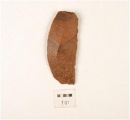 | Description / विवरण | A knife shaped blade, made on chert, ridge on dorsal surface, use wear edges, prominent bulb on ventral. |
