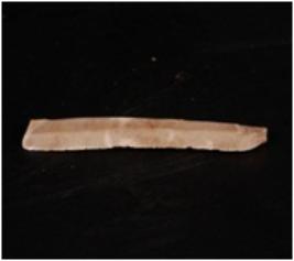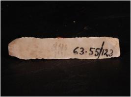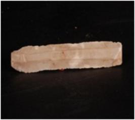 | Description / विवरण | A Parallel sided blade made of Chert with a mid-ridge on dorsal side, a diffused bulb on the ventral, use-wear marks along the cutting edges. Slightly broken at distal end. |