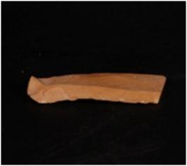 | Description / विवरण | A Parallel sided blade made of Chert with a mid-ridge on dorsal side, half broken along the distal end, detached from a prepared core, use-wear marks along the cutting edges and bulb on the ventral side. |