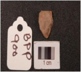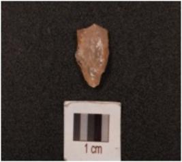 | Description / विवरण | A fragment side scraper on quartz, with diffused bulb on ventral side, side stunck, partly broken along one end. |