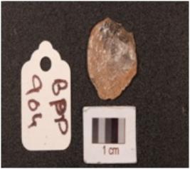 | Description / विवरण | A side scraper on side struck quartz flake, with pared platform on one lateral side, prominent bulb on ventral side, use-wear marks along the cutting edge. |