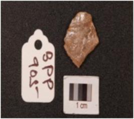 | Description / विवरण | A side scraper on end struck quartz flake, cortex on dorsal surface, prepared platform on proximal end, diffused bulb on distal end, use-wear marks along the cutting edge. |