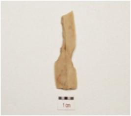 | Description / विवरण | A blade made on end struck chert, broken both edges, ridges on the dorsal side and smooth surface. |