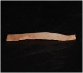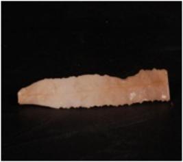 | Description / विवरण | A Parallel side blade made of chert with a mid-ridge on dorsal side, broken at proximal end and bulb on the ventral side. |