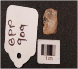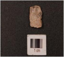 | Description / विवरण | Fragment of a parrallel sided blade on quartz, with flake scars on dorsal side, prepared platform on proximal end, prominent bulb on ventral surface, use-wear marks along distal end cutting edges. |