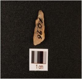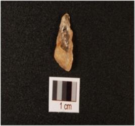| Description / विवरण | A point made on quartz flake with distal end broken and mid-ridge on dorsal side. |