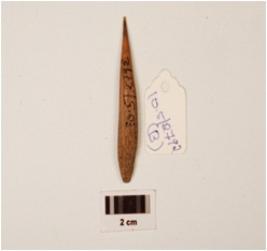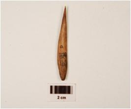 | Description / विवरण | Bone point with a pointed end, broader at other end, porous, polished surface, broken at broader end. |