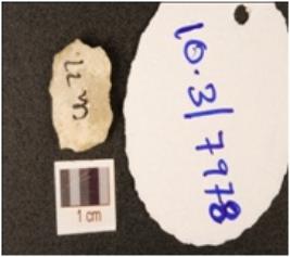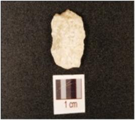 | Description / विवरण | A chert blade with a striking platform on one end, positive bulb on ventral side, working edge on both side, slight chippings on dorsal side and distal end broken. |