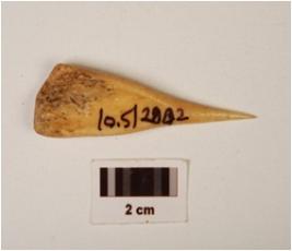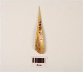 | Description / विवरण | A point made on bone with circular in cross section, polished surface and tip broken. |