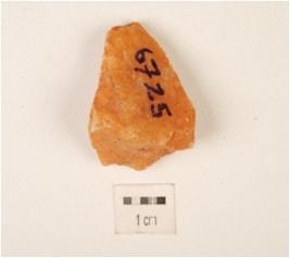 | Description / विवरण | A flake made on quartz, flake scars on surface, uneven in shape. |