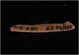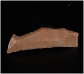 | Description / विवरण | A chert blade with a double ridge on dorsal side. Both cutting edges has use-wear marks and bulb of percussion is on ventral side. |