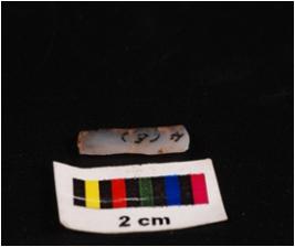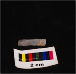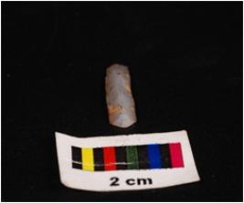 | Description / विवरण | Parallel sided blade with uneven, sharp working edge, single ridge on dorsal surface, broken from both proximal and distal end. |