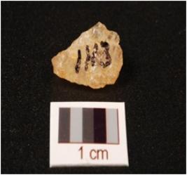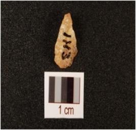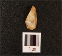 | Description / विवरण | A quartz blade with triangular section, half broken and mid-ridge on dorsal side and use ware marks ib cutting edge. |