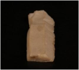 | Description / विवरण | Fragment of a parallel sided blade made of chert, mid-ridge on dorsal side and a diffused bulb on the ventral side, use-wear marks along the cutting edges, broken at distal end and rectangular in section. |